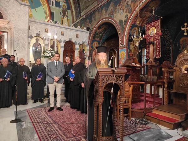 Εξόχως όμως, ευγνωμόνως ευχαρίστησε τον Σεβασμιώτατο Ποιμενάρχη κ. Διονύσιο για τις ανύστακτες προσπάθειές του για τον «καταρτισμό» των Πιστών εν όψει των Αγίων ημερών αλλά και για την φιλόμουσο διάθεσή του στην επιλογή αυτών που συμμετείχαν στην εξαίσια αυτή Πασχαλινή Εορταστική εκδήλωση, μεταφέροντας τις ευχές του και τις Πατρικές ευλογίες του για «καλή Ανάσταση».