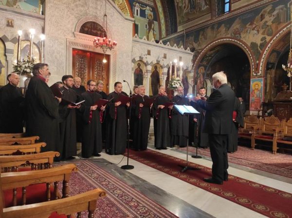 Στο τρίτο και τελευταίο μέρος της εφετινής Πασχαλινής Εκδήλωσης της Ι. Μητροπόλεως η «ΒΥΖΑΝΤΙΝΗ ΧΟΡΩΔΙΑ ΑΘΗΝΩΝ», υπό την διεύθυνση του χοράρχη Άρχοντος Υμνωδού της Μεγάλης του Χριστού Εκκλησίας κ. Γεωργίου Χατζηχρόνογλου, απέδωσε, άριστα, μουσικά Εκκλησιαστικά μέλη από την Μεγάλη Εβδομάδα αλλά και ειδικά συνθεμένους για τις ημέρες αυτές ύμνους προετοιμάζοντας τους ακροατές της Εκδηλώσεως να υποδεχθούν με κατάνυξη τα Πάθη και την Ανάσταση του Κυρίου μας!