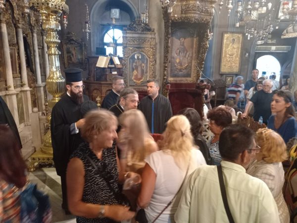 Εξουσιοδότησε μάλιστα τον π. Γεώργιο Φανερό, μαζί με τις ευχαριστίες, την ευγνωμοσύνη και την αγάπη προς τον Σεβασμιώτατο Μητροπολίτη Σύρου κ. Δωρόθεο να προσκομίσει εκ μέρους του ως «αντίδωρο» ένα Αρχιερατικό Εγκόλπιο. Ο Ιεροκήρυξ του Ιερού Προσκυνήματος Πανοσ. Αρχιμ. π. Ιάκωβος Σέττας εκ μέρους του Σεβασμιωτάτου Μητροπολίτου Σύρου κ. Δωροθέου, των μελών της Διοικούσης Επιτροπής του Π.Ι.Ι.Ε.Τ., των Ιερέων και του ευσεβούς λαού της Τήνου ευχήθηκε κατάλληλα και ευχαρίστησε όλους τους προσκυνητές.