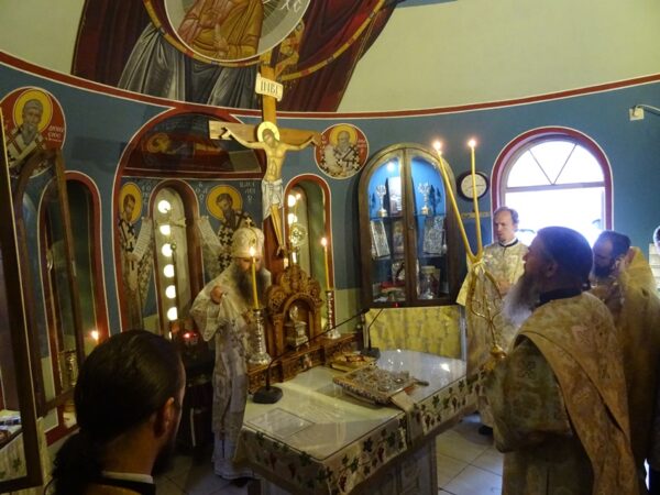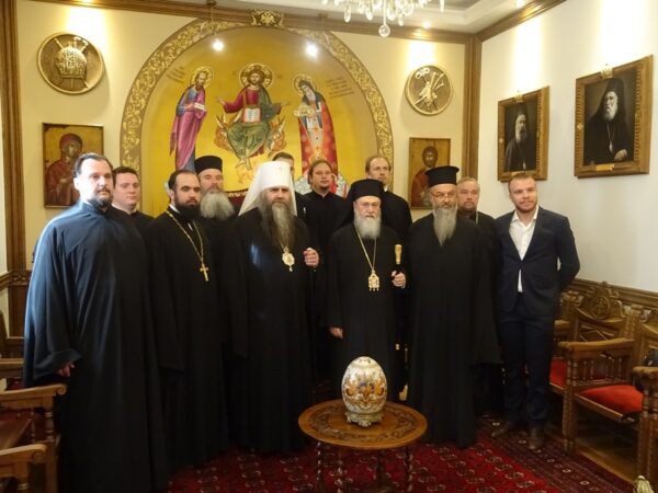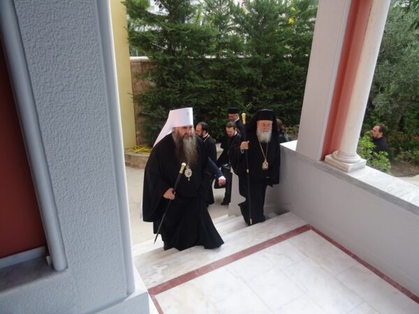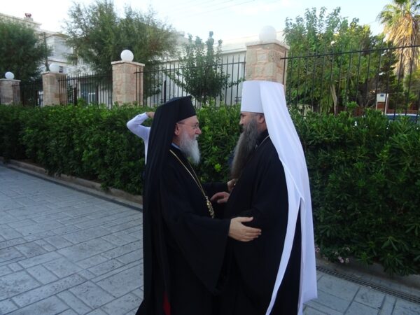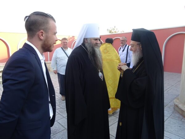 Συγκεκριμένα χθες Τρίτη, 3 Σεπτεμβρίου 2019, ο Σεβ. Μητροπολίτης Νίζνι Νόβγκοροντ και Αρζαμάς κ. Γεώργιος, πλαισιούμενος από Κληρικούς και λαϊκούς συνεργάτες του τέλεσε, παρουσία του σεπτού Ποιμενάρχου Κορίνθου κ. Διονυσίου, την Θ. Λειτουργία στο Μητροπολιτικό Παρεκκλήσιο της Αγίας Φωτεινής της Σαμαρείτιδος. Αμέσως μετά την Θ. Λειτουργία ο Σεβ. Μητροπολίτης Κορίνθου κ. Διονύσιος υποδέχθηκε τον Σεβασμιώτατο Μητροπολίτη κ. Γεώργιο στο Επισκοπικό Μέγαρο όπου παρετέθη, προς τιμήν τους, πρόγευμα στην επίσημη τραπεζαρία του Επισκοπείου και στην συνέχεια έλαβε χώρα συζήτηση περί της τρέχουσας Εκκλησιαστικής επικαιρότητος, συμπεριλαμβανομένου και του «Ουκρανικού Ζητήματος», που τέθηκε από τον υψηλό προσκεκλημένο. Αμέσως μετά το πέρας της συζητήσεως ο σεπτός Ποιμενάρχης Κορίνθου και ο Σεβασμιώτατος κ. Γεώργιος αντάλλαξαν αναμνηστικά δώρα.
