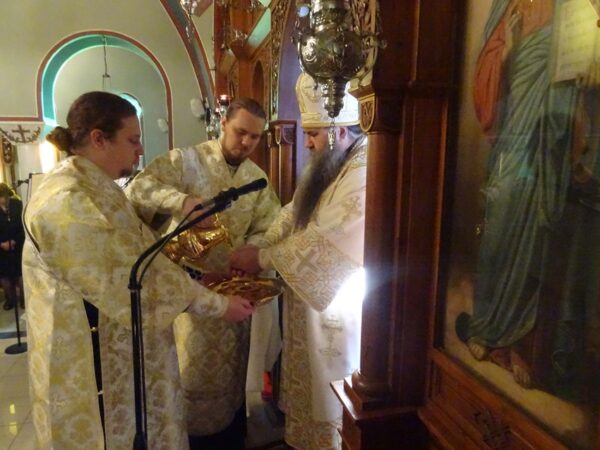 Το απόγευμα της ίδια ημέρας ο Σεβ. Μητροπολίτης Νίζνι Νόβγκοροντ και Αρζαμάς κ. Γεώργιος και οι συνοδοί του επισκέφτηκαν την Ι. Μονή Οσίου Παταπίου Λουτρακίου για να προσκυνήσουν το χαριτόβρυτο Ι. Λείψανο του Όσιου Παταπίου και στην συνέχεια στο Καθολικό της Ι. Μονής έψαλαν «Χαιρετισμούς» στον Όσιο παρουσία του Σεβ. Ποιμενάρχου μας και του Θεοφιλεστάτου Επισκόπου Κεγχρεών κ. Αγαπίου.