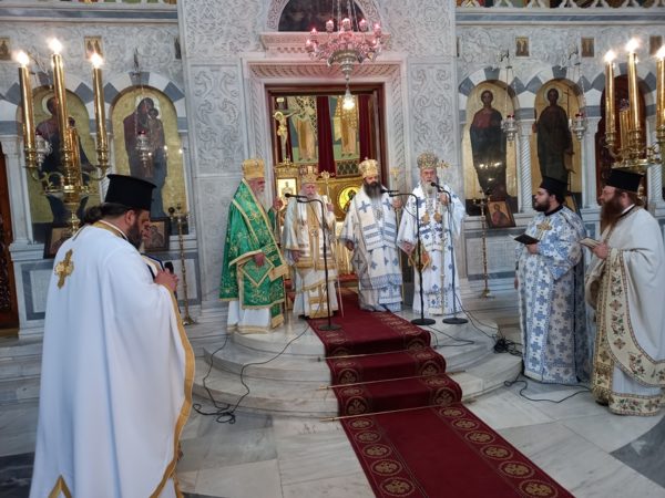 Πολυαρχιερατική Θ. Λειτουργία τελέσθηκε χθες, Σάββατο, 7 Αυγούστου 2021, στον Καθεδρικό Ι. Ναό του Απ. Παύλου στην Κόρινθο. Της Θείας Λειτουργίας προεξήρχε ο Σεβ. Μητροπολίτης Ηλείας κ. Γερμανός πλαισιούμενος υπό των Θεοφ. Επισκόπων Ωλένης κ. Αθανασίου, Κεχρεών κ. Αγαπίου ως και του Σεβ. Ποιμενάρχου της Κορίνθου κ. Διονυσίου.
