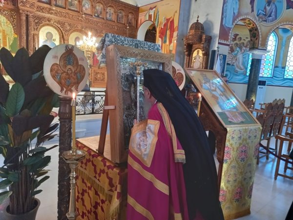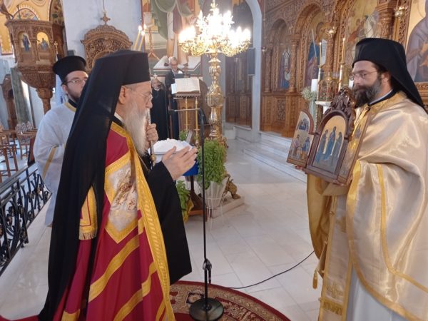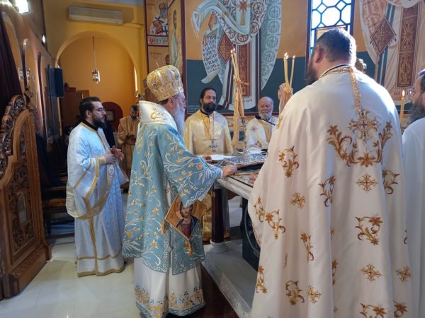 Ο Σεβασμιώτατος ήταν πλαισιούμενος από τους Πανοσ. Αρχιμ. π. Μιχαήλ Σταθάκη, Προϊστάμενο του Ι. Ναού, Πανοσ. Αρχιμ. π. Βαρνάβα Μαρκούλη, τον Αιδεσ. Πρωτ/ρο π. Νικόλαο Καρχιλάκη, τον Αιδεσ. π. Ιωάννη Χριστοδουλάκη και τους συνοδούς του Κληρικούς Πανοσ. Αρχιμ. π. Αρκάδιο Ραζνύ, π. Δαμασκηνό Γεννηματά και π. Χρήστο Χίλια, ενώ στο Παραστάσιμο έλαβε μέρος και ο Πανοσ. Αρχιμ. π. Θεολόγος Αλεξανδράκης, υπεύθυνος του Ιδρύματος Ποιμαντικής Επιμόρφωσης της Αρχιεπισκοπής Αθηνών.