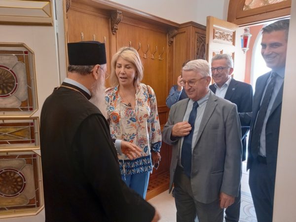 Από το Επισκοπείο της Ι. Μητροπόλεως Κορίνθου ξεκίνησε την περιοδεία του στην Κορινθία, σήμερα Τρίτη, 28 Μαΐου 2024, Κλιμάκιο της Ν.Δ. αποτελούμενο από την Υφυπουργό Παιδείας, Θρησκευμάτων και Αθλητισμού κ. Ζέττα Μακρή, τον Υφυπουργό Πολιτισμού κ. Χρίστο Δήμα, τον Γ’ Αντιπρόεδρο της Βουλής των Ελλήνων κ. Αθανάσιο Μπούρα, την Γενική Γραμματέα Σύγχρονου Πολιτισμού, του Υπουργείου Πολιτισμού κ. Ελένη Δουνδουλάκη, τον Πρόεδρο της ΔΕΕΠ Κορινθίας κ. Δημήτριο Σουφρίλα και λοιπούς επιτελείς του κυβερνώντος Κόμματος ενόψει των επικείμενων Ευρωεκλογών.