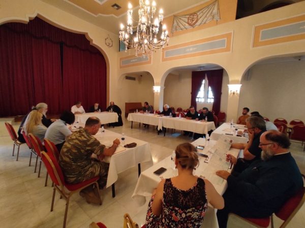 Κατά την διάρκεια της συσκέψεως, η οποία πραγματοποιήθηκε υπό την προεδρία και καθοδήγηση του Σεβασμιωτάτου Μητροπολίτου Κορίνθου κ. Διονυσίου, παρουσία του Πρωτοσυγκέλλου της Ι. Μητροπόλεως μας Θεοφιλεστάτου Επισκόπου Κεγχρεών κ. Αγαπίου, του Δημάρχου Κορινθίων κ. Βασιλείου Νανόπουλου, εκπροσώπων όλων των Πολιτικών, Στρατιωτικών, Αστυνομικών και υπολοίπων Φορέων της πόλεως Κορίνθου, καθώς και Ιερέων και Ιεροψαλτών του Καθεδρικού Ι. Ναού Απ. Παύλου, συζητήθηκαν οι τρόποι με τους οποίους θα πραγματοποιηθούν καλύτερα οι προγραμματισμένες Λειτουργικές και Εορταστικές Εκδηλώσεις προς τιμήν του Πολιούχου μας και Αποστόλου των Εθνών Παύλου.
