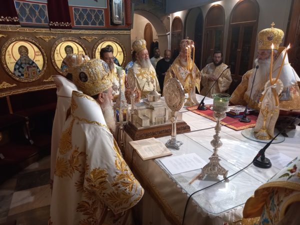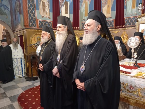 Σήμερα το πρωί Δευτέρα, 3 Οκτωβρίου 2022 στον Ιερό Καθεδρικό Ναό του Απ. Παύλου στην Κόρινθο τελέσθηκε ο Όρθρος προεξάρχοντος του Σεβασμιωτάτου Μητροπολίτου Σιδηροκάστρου κ. Μακαρίου και στην συνέχεια Πολυαρχιερατικό Συλλείτουργο προεξάρχοντος του Σεβασμιωτάτου Μητροπολίτου Πειραιώς κ. Σεραφείμ και συλλειτουργούντων των Σεβασμιωτάτων Μητροπολιτών Σύρου κ. Δωροθέου, Σιδηροκάστρου κ. Μακαρίου, Χαλκίδος κ. Χρυσοστόμου, Πατρών κ. Χρυσοστόμου, Μεσσηνίας κ. Χρυσοστόμου, Γλυφάδας κ. Αντωνίου, του Θεοφιλεστάτου Επισκόπου Κεγχρεών κ. Αγαπίου, Πρωτοσυγκέλλου της Ιεράς Μητροπόλεως Κορίνθου, ως και του Σεβασμιώτατου Μητροπολίτη κ. Διονυσίου, παρέστησαν δε συμπροσευχόμενοι ο Σεβασμιώτατος Μητροπολίτης Μεγάρων κ. Κωνσταντίνος και ο Θεοφιλέστατος Επίσκοπος Κεράμων κ. Βαρθολομαίος.