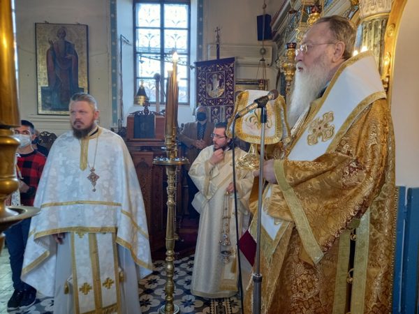 Ο Σεβασμιώτατος πλαισιώθηκε χθες από τον Πανοσ. Αρχιμ. π. Αρκάδιο Ραζνύ, τον Εφημέριο του Ι. Ναού π. Ιωάννη Μητσόπουλο και τους Διακόνους π. Δαμασκηνό Γεννηματά και π. Χρήστο Χίλια.