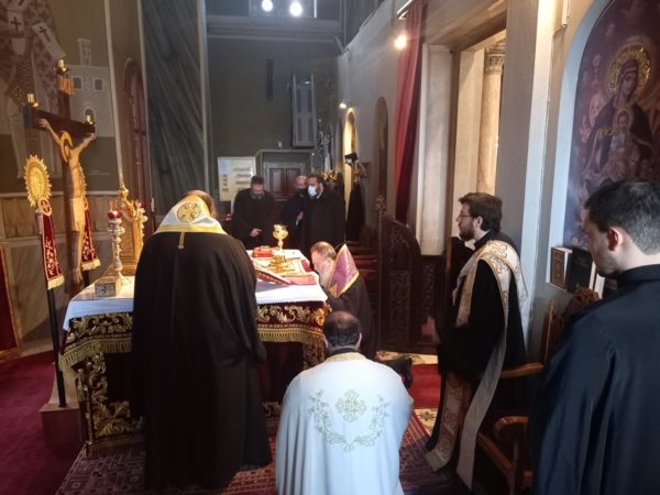 Ο Σεβασμιώτατος, πριν το μνημόσυνο, ομίλησε για το θαύμα των κολλύβων του Αγίου Θεοδώρου του Τήρωνος που τελέστηκε κατά την περίοδο της αυτοκρατορίας του Ιουλιανού του Παραβάτη, ο οποίος γνωρίζοντας ότι οι Χριστιανοί νήστευαν την Μ. Τεσσαρακοστή θέλησε να τους μιάνει με ειδωλόθυτα. Τότε, ο Άγιος Θεόδωρος εμφανίστηκε στον Πατριάρχη Ευδόξιο και του είπε οι Χριστιανοί να βράσουν και να φάνε κόλλυβα, για όλο αυτό το διάστημα, ώστε να αποφύγουν τις μολυσμένες τροφές.