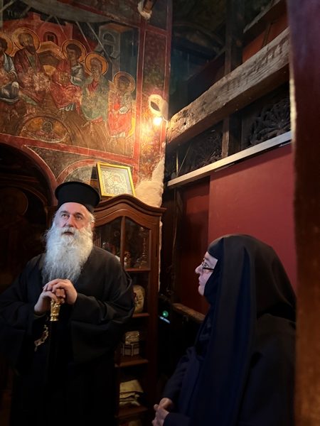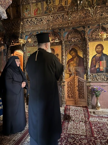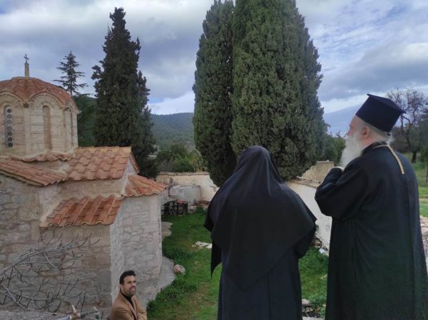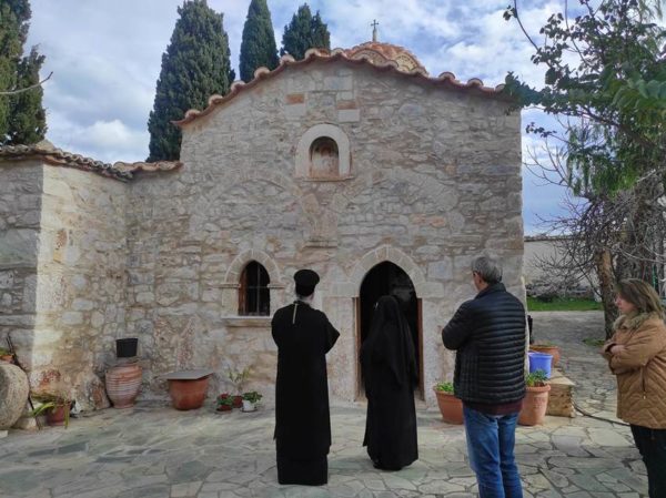 Στη συνέχεια, ο Σεβ. Μητροπολίτης κ. Παύλος μετέβη στην ιστορική Ι. Μονή Κοιμήσεως της Θεοτόκου Σοφικού Κορινθίας, η οποία χρονολογείται από τον 11ο αιώνα μ.Χ. όπου προσκύνησε, ξεναγήθηκε και ομίλησε με τη Γερόντισσα της Ι. Μόνης Λυδία μοναχή.