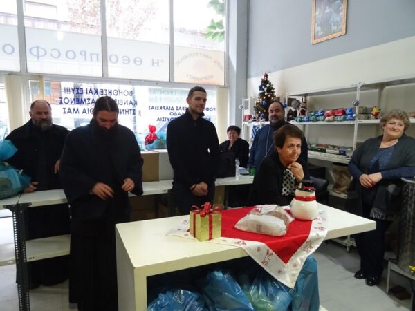 Την Δευτέρα, 30 Δεκεμβρίου 2019 το πρωί, ο Σεβασμιώτατος Μητροπολίτης Κορίνθου κ. Διονύσιος επισκέφθηκε τους Ιερείς, τους εθελοντές και τις εθελόντριες της «Θεοπροσφοράς» για τις καθιερωμένες εόρτιες ευχές του. Ο Σεβασμιώτατος ενημερώθηκε από τον υπεύθυνο του Ιδρύματος Αρχιμ. π. Αρκάδιο Ραζνύ ότι για την περίοδο των εορτών των Χριστουγέννων μοιράσθηκαν περίπου 1.500 kg κρέατος και 6.000 kg τροφίμων μακράς διάρκειας και συνολικά για το έτος 2019 μοιράσθηκαν 38.670 kg τροφίμων.