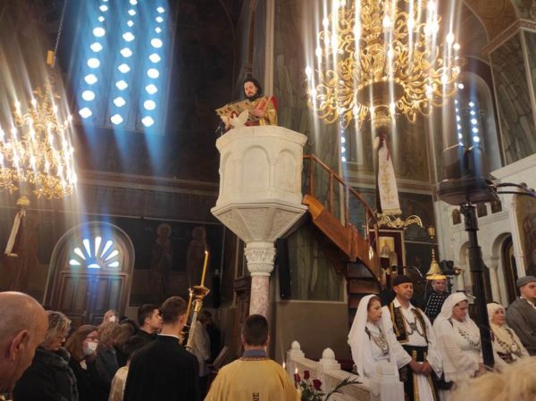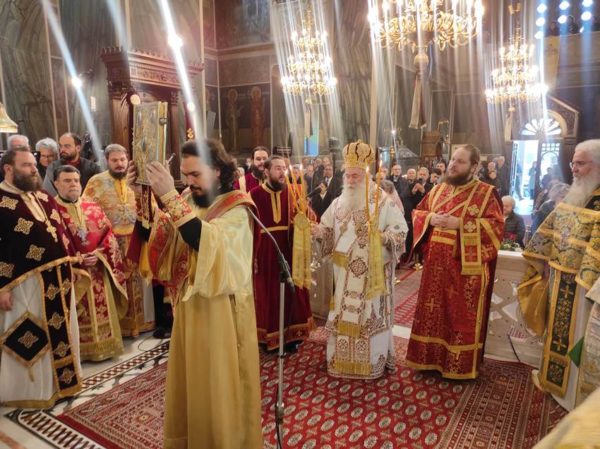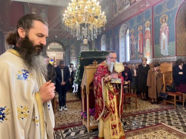 Ανήμερα της εορτής Τετάρτη 11 Φεβρουαρίου 2026, τελέσθηκε ο Όρθρος και η Πανηγυρική Αρχιερατική Θ. Λειτουργία, προεξάρχοντος του Σεβ. Μητροπολίτου κ. Παύλου πλαισιωμένου από τον Πανοσ. Αρχιμ. π. Αμβρόσιο Γκουρβέλο, εκ της Ι. Μητροπόλεως Πατρών, τον Ιεροκήρυκα της Ι. Μητροπόλεως Κορίνθου Πανοσ. Αρχιμ. π. Άνθιμο Παπαλεξόπουλο και πλήθους Ιερέων εκ των Αρχιερατικών Περιφερειών Ξυλοκάστρου και Ευρωστίνης. Προ του πέρατος της Θ. Λειτουργίας ο Σεβασμιώτατος χειροθέτησε Αναγνώστη τον Δεξιό Ιεροψάλτη του Ι. Ναού κ. Λεωνίδα Δρακόπουλο, δίδοντάς του εκ μέρους του Εκκλησιαστικού Συμβουλίου μια τιμητική πλακέτα για την τεσσαρανταετή διακονία του.