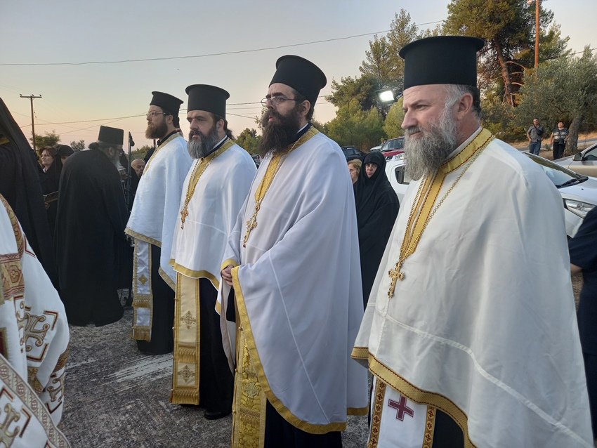 Την Ι. Εικόνα συνόδευσαν ο Σεβασμιώτατος Μητροπολίτης Κορίνθου κ. Διονύσιος, ο Βοηθός Επίσκοπος και Πρωτοσύγκελλος της Ι. Μητροπόλεως κ. Αγάπιος, οι Αρχιμ. π. Αχίλλιος Τσούτσουρας, Εφημέριος Ι. Ναού Ζωοδόχου Πηγής Τρικάλων και π. Κλαύδιος Καλλαράς, Εφημέριος Ι. Ναού Μεταμορφώσεως Σωτήρος Κιάτου και Αρχιερατικός Επίτροπος Σικυώνος, οι π. Βασίλειος Κολύτας, Εφημέριος Ι. Ναού Μετ. Σωτήρως Ηρακλείου της Ι. Μητροπόλεως Ιωνίας και Φιλαφελφείας, π. Αθανάσιος Κοντογιάννης, Εφημέριος Αποστόλου Παύλου Κορίνθου, π. Δημήτριος Στεργιόπουλος, Εφημέριος Ι. Ναού Κοιμήσεως Θεοτόκου Ιωνίας Κορίνθου, π. Ιωάννης Ρούκης, Εφημέριος Ι. Ναού Κοιμήσεως Θεοτόκου Ξυλοκερίζης, οι Διάκονοι π. Δαμασκηνός Γεννηματάς και π. Χρήστος Χίλιας, οι Ηγουμένες των Ι. Ησυχαστηρίου «Τίμιος Σταυρός» Μαψού Γερόντισσα Ιλαρία, συνοδευόμενη από Μοναχές της Ι. Αδελφότητος του Ι. Ησυχαστηρίου, η Γερόντισσα Ξένη μεθ’ απάσης της Ι. Αδελφότητος της πανηγυρίζουσας Ι. Μονής και πλήθος Λαού.