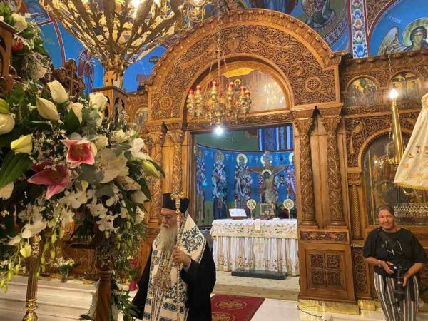 Την παραμονή της εορτής Δευτέρα, 14 Αυγούστου 2023, ο Σεβασμιώτατος Μητροπολίτης Κορίνθου κ. Διονύσιος χοροστάτησε στον πανηγυρικό Εσπερινό, στον Ιερό Ναό Κοιμήσεως της Θεοτόκου Ιωνίας (Συνοικισμού) Κορίνθου.