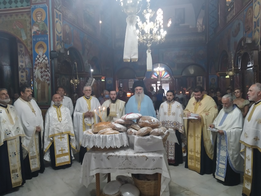 Στον πανηγυρίζοντα Ενοριακό Ναό, ο Μητροπολίτης Κορείνθου κ. Διονύσιος τέλεσε την Πανηγυρική Θ. Λειτουργία πλαισιούμενος από τον Πανοσ. Αρχιμ. π. Άνθιμο Παπαλεξόπουλο, τον π. Ειρηναίο Κόϊκα εκ της Ι. Αρχιεπισκοπής Αυστραλίας, τον Εφημέριο του Ι. Ναού Αιδεσ. Πρωτ/ρο π. Κυριάκο Σκλία, τον Αιδεσ. π. Μιχαήλ Μαρνέζη, Εφημέριο του Ι. Ναού Αγίου Γεωργίου Μπολατίου και τους Διακόνους π. Δαμασκηνό Γεννηματά και π. Χρήστο Χίλια.
