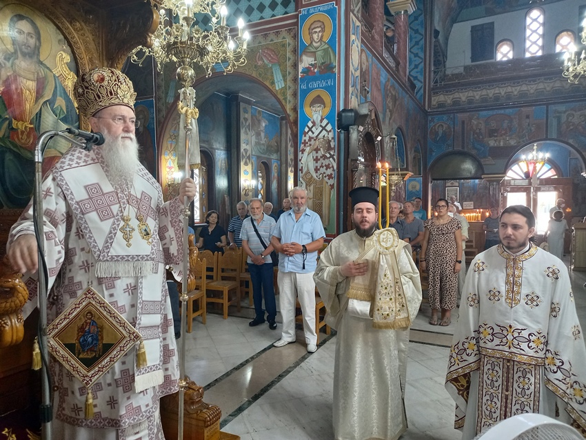 Κατά την Θ. Λειτουργία ο Ποιμενάρχης μνημόνευσε και δεήθηκε υπέρ αναπαύσεως των ψυχών των αδικοχαμένων πιλότων Χρήστου Μουλά και Περικλή Στεφανίδη, στην κατάσβεση της πυρκαγιάς στην Κάρυστο και πριν την απόλυση της Θ. Λειτουργίας ομίλησε ερμηνεύοντας την Αποστολική και Ευαγγελική περικοπή της ημέρας και επισημαίνοντας ότι ο Μωσαϊκός νόμος ήταν «παιδαγωγός» που μας φρουρούσε και μας προετοίμαζε να δεχθούμε την Πίστη στον Ιησού Χριστό, δια της οποίας είμαστε όλοι τέκνα του Θεού και νέοι άνθρωποι. Δεν σώζεται κανείς μόνο με τα έργα του νόμου αλλά και με τα έργα της Πίστεως.