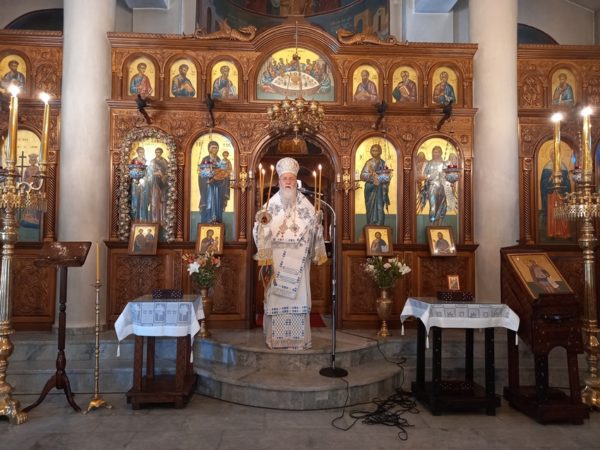 Στο κήρυγμα του ο Σεβασμιώτατος αναλύοντας την Αποστολική περικοπή της ημέρας, αναφέρθηκε στον Απόστολο Παύλο και στην δεύτερη Αποστολική περιοδεία Του κατά την διάρκεια της οποίας, από την Κόρινθο, συνέγραψε την προς Ρωμαίους Επιστολή Του, πιστεύοντας ότι η Εκκλησία της Ρώμης είχε επηρεαστεί από την ειδωλολατρία. Ο Απόστολος Πέτρος στην Β΄ Επιστολή Του γράφει: «ᾧ γάρ τις ἥττηται, τούτῳ καὶ δεδούλωται» (Β΄ Πετ. β΄, 19). Ο Χριστιανός έχει κίνδυνο να ηττηθεί από την αμαρτία, δηλαδή, την άρνηση να πράξει το θέλημα του Θεού. Εάν υποδουλωθεί από την αμαρτία δεν μπορεί να ισχυριστεί ότι πράττει το θέλημα του Θεού, καθώς ή το θέλημα του Θεού θα πράττει και θα ζει ελεύθερος από την αμαρτία ή την αμαρτία θα πράττει υποδουλωμένος σε αυτή και θα την επαναλαμβάνει και θα αισθάνεται άνετα και ευχάριστα πράττοντάς την. Γι’ αυτόν τον λόγο ο Απόστολος Παύλος επισημαίνει στους Ρωμαίους ότι με τον ερχομό του Χριστού ελευθερωθήκαμε από την αμαρτία, και το μόνο που οφείλουμε είναι να αγαπάμε κι εμείς τον Θεό και να μην αμαρτάνουμε. Στην βάπτισή μας αποτάξαμε τον σατανά και τα έργα του, ελευθερωθήκαμε από την αμαρτία και υποδουλωθήκαμε στον Θεό, γεγονός που επιτυγχάνεται καθημερινά τόσο με την εφαρμογή του θελήματός Του όσο και με την μετοχή μας στα Μυστήρια της Εκκλησίας, που αποτελεί το καταφύγιο στο οποίο ο Πιστός αγιάζεται. Γι’ αυτό ακριβώς πασχίζουμε να έχουμε τις Εκκλησίες μας ανοικτές, παρά το γεγονός ότι κάποιοι επιθυμούν το αντίθετο, για να μπορεί ο Πιστός να προοδεύει στην αγιότητα και να μισεί και να απεχθάνεται την αμαρτία.