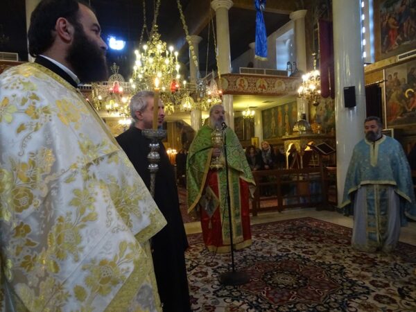 Ο Σεβ. Ποιμενάρχης, στην σύντομη προσλαλιά του, αναφέρθηκε στην μεγάλη εορτή των Αγίων Θεοφανείων και στην εξέχουσα για την Εκκλησία μας προσωπικότητα του Τιμίου Προδρόμου. Επίσης, απηύθηνε εόρτιες ευχές προς το Εκκλησιαστικό Συμβούλιο, τον εορτάζοντα προϊστάμενο του Ι. Ναού και Αρχιερατικό Επίτροπο Ευρωστίνης π. Ιωάννη Γιαννακά, τους παρισταμένους άρχοντες (τονΥφυπουργό Ανάπτυξης κ. Χρίστο Δήμα, τους Βουλευτέςκ. Νικόλαο Ταγαρά και κ. ΜαριλέναΣούκουλη,τουςΑντιπεριφερειάρχεςκ. ΑναστάσιοΓκιολή και κ. Αθηνά Κόρκακαι τον Δήμαρχο Ξυλοκάστρου–Ευρωστίνης κ. Βλάσιο Τσιώτο) καιτο Εκκλησίασμα επικαλούμενος τον φωτισμό και την χάρι του Επιφανέντος εν Ιορδάνη Κυρίου ημών Ιησού Χριστού! Επακολούθησε κέρασμα στο Πνευματικό Κέντρο του Ιερού Ναού από το Εκκλησιαστικό Συμβούλιο.