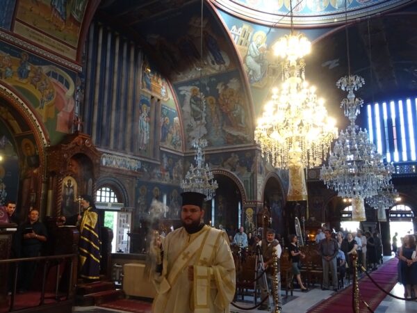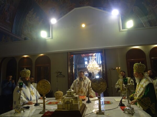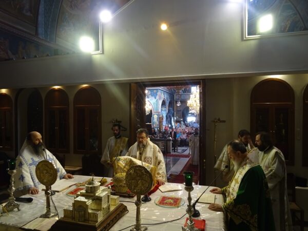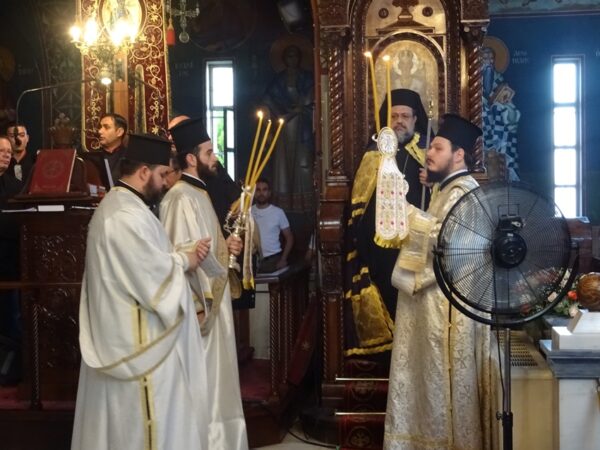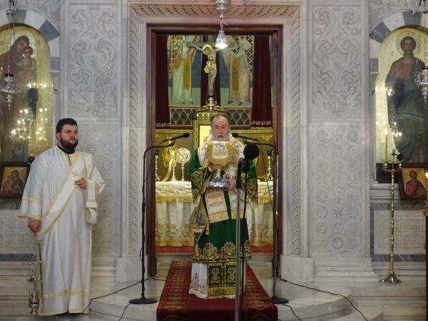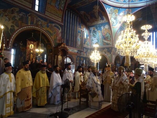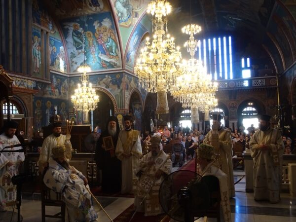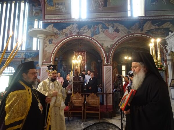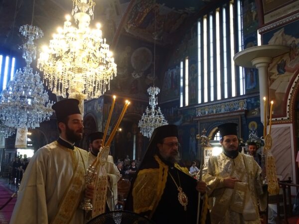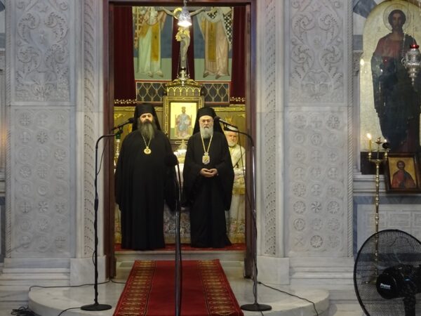 Σήμερα, ανήμερα της μνήμης των Πρωτοκορυφαίων Αποστόλων Πέτρου και Παύλου, χοροστάτησε στην Ιερά Ακολουθία του Όρθρου και τέλεσε την Θεία Λειτουργία ο ορισθείς υπό της Ιεράς Συνόδου της Εκκλησίας της Ελλάδος, εκπρόσωπος Αυτής, Σεβασμιώτατος Μητροπολίτης Μεσσηνίας κ. Χρυσόστομος, συνιερουργούντων του Θεοφιλεστάτου Επισκόπου Κεγχρεών κ. Αγαπίου και του Σεβασμιωτάτου Μητροπολίτου Κορίνθου κ. Διονυσίου.