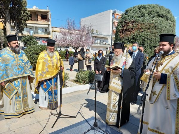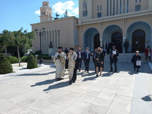 Μετά το πέρας της Θ. Λειτουργίας και περί ώρα 10:30 π.μ., παρουσία των Αρχών του Τόπου, τέλεσαν την επίσημη Δοξολογία για τον εορτασμό της Εθνικής Παλιγγενεσίας. Ακολούθως, όλοι μαζί μετέβησαν στο Μαυσωλείο, στον προαύλιο χώρο του Καθεδρικού Ι. Ναού, για την τέλεση του Επιμνημόσυνου Τρισαγίου για τις ψυχές των πεσόντων στον Εθνικοαπελευθερωτικό Αγώνα του 1821, μετά το πέρας του οποίου έλαβε χώρα η κατάθεση στεφάνων.
