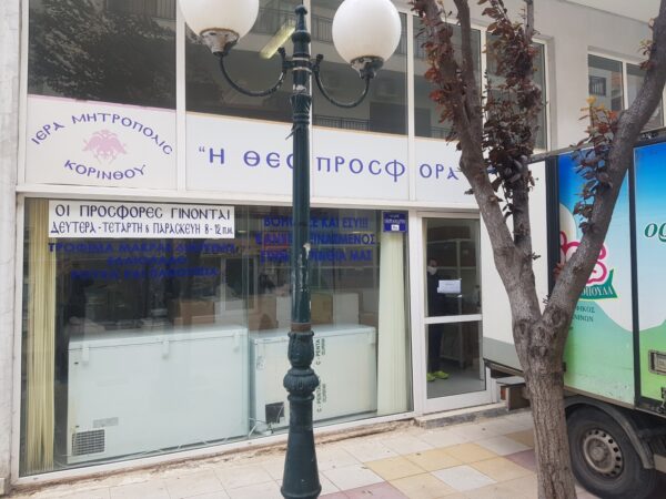 Η Τράπεζα Τροφίμων και Ενδυμάτων της Κορινθιακής Εκκλησίας, που επί 10 και πλέον έτη με μεγάλες θυσίες ανακουφίζει και παρηγορεί τις ανάγκες των συνανθρώπων μας και χωρίς μάλιστα την παραμικρή κρατική συνδρομή, με την επωνυμία «Η ΘΕΟΠΡΟΣΦΟΡΑ», μέσω των Ιερέων και των εθελοντών της και έχοντας λάβει όλα τα απαραίτητα μέτρα προφύλαξης, για την μη διάδοση του ιού, διένειμε την Παρασκευή, 10 Απριλίου 2020 και την Μεγάλη Δευτέρα, 13 Απριλίου 2020, 1,5 τόννο κρέατος και κοτόπουλα και 3 τόννους τρόφιμα, ώστε κι εφέτος και