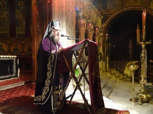Λίγο πριν την απόλυση, ο Σεβ. Μητροπολίτης μας κ. Διονύσιος ομίλησε με θερμούς λόγους και ευχαρίστησε εκ βάθους καρδίας τον Πανοσ. Αρχιμ. π. Δαμασκηνό Κιαμέτη για τον βαθύτατα θεολογικό και εκκλησιολογικό του λόγο, ενώ συνεχάρη τους ευσεβείς πιστούς που δεν φοβήθηκαν τον κίνδυνο της εξάπλωσης του «κορωνοϊού» και γεμάτοι από πίστη στον Θεό προσήλθαν στην Εκκλησία τόσο το πρωί όσο και το απόγευμα για να λάβουν την ευλογία και την χάρη Του.