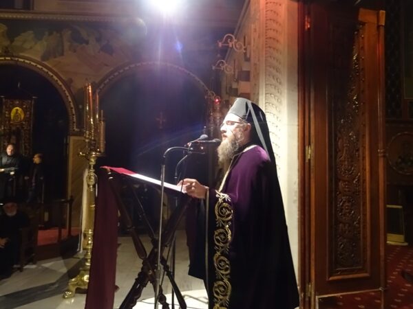 Στον λόγο του προς τους Κληρικούς και τους ευσεβείς πιστούς ο Θεοφιλέστατος αρχικά αναφέρθηκε στην τιμητική προσκύνηση των Ι. Εικόνων, δια της οποίας αποδίδεται ο σεβασμός στο εικονιζόμενο Πρόσωπο, και στην συνέχεια τόνισε ότι ο εγωϊσμός ευθύνεται για την κατάσταση της αιρέσεως και της πλάνης, γι᾿ αυτό και προέτρεψε τους πιστούς να καλλιεργούν «ορθοδόξως» την ταπείνωση και με συντετριμμένη καρδιά να πολεμούν τον εγωϊσμό και το αποκύημα αυτού την κενοδοξία, ώστε να προσελκύσουν το έλεος και την χάρη του Θεού.