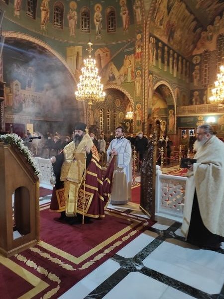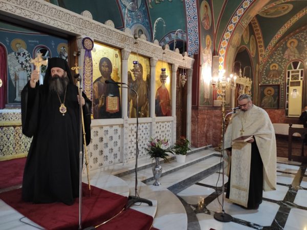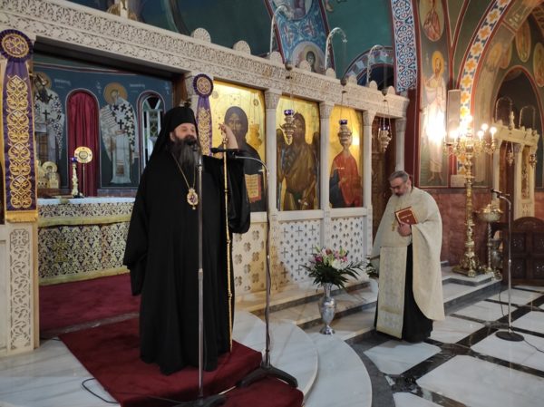 Στο κήρυγμά του ο Σεβασμιώτατος, αντλώντας έμπνευση από την Ε’ ωδή του Ακαθίστου Ύμνου και συγκεκριμένα από τον στίχο «Ἰσχὺς καὶ ὀχύρωμα, ἀνθρώπων χαῖρε Ἄχραντε,», αναφέρθηκε στα θλιβερά γεγονότα του πολέμου στην Ουκρανία αλλά και στην γενική αναστάτωση που επικρατεί εξ αιτίας της οικονομικής και υγειονομικής κρίσης. Η ανθρώπινη Ιστορία είναι γεμάτη από τέτοιες κρίσεις, οι οποίες στο πέρασμα των αιώνων ήρχοντο και παρήρχοντο και αν ζούσαν οι Πατέρες μας, για όλα αυτά που συμβαίνουν, θα μας έλεγαν απλά τον λόγο του Θεού, «διὰ τὴν ἀπιστίαν ὑμῶν» (Ματθ. Ιζ΄, 20). Είναι τρομακτικό το γεγονός ότι ομόδοξοι Χριστιανοί πρωτοστατούν σ’ αυτά τα θλιβερά γεγονότα και εμείς, ως προσφυγικό Έθνος, γνωρίζουμε και μπορούμε να καταλάβουμε τι αντιμετωπίζουν τώρα αυτοί οι άνθρωποι. Ξέρουμε όμως και που να καταφύγουμε σ’ αυτές τις περιπτώσεις, ξέρουμε ότι η ισχύς και το οχύρωμά μας είναι η Παναγιά μας, που έφερε στον Κόσμο τον Αρχηγό της Ζωής και Αυτόν που μας υπόσχεται σε όλους μας την ζωή την αιώνιο. Οι πόλεμοι, οι κρίσεις, τα προβλήματα, όλα αυτά που περνά ο κόσμος, συν Χριστώ, ξεπερνιούνται και εκμηδενίζονται. Όσοι είναι με τον Θεό και ζητούν την βοήθειά Του, ο Θεός τους στηρίζει και τους προστατεύει. Εμείς οι Έλληνες έχουμε ζήσει την προσφυγιά από τους πατέρες μας, που ενώ η μία συμφορά διαδεχόταν την άλλη αυτοί πάντοτε παρέμεναν πιστοί, προσεύχονταν, νήστευαν και αποτέλεσαν φωτεινό παράδειγμα όχι μόνο για εμάς τα παιδιά τους αλλά και για άλλους λαούς!