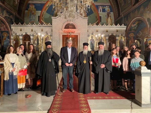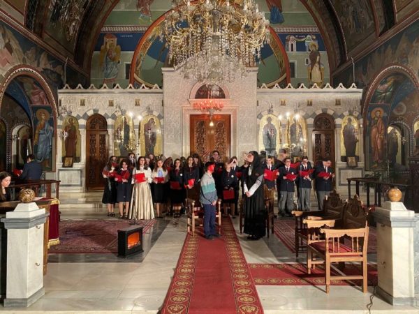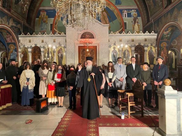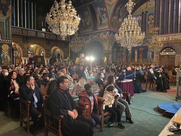 Ο Σεβασμιώτατος ολοκλήρωσε τον σύντομο χαιρετισμό του με θερμούς συγχαρητήριους λόγους για τους χορωδούς, για την εξαιρετική απόδοση των Εκκλησιαστικών Ύμνων, για τον κ. Ζαχαρόπουλο, για την ενδιαφέρουσα εισήγησή του, για τους μαθητές και τους Καθηγητές των Εκπαιδευτηρίων «ΑΠΟΣΤΟΛΟΣ ΠΑΥΛΟΣ», που κοπίασαν για να πραγματοποιήσουν την Εκδήλωση αυτή, αλλά και για τους γονείς και τους Πιστούς γενικότερα, που έσπευσαν να συμμετάσχουν και σ᾿ αυτή την πνευματική Εκδήλωση της Ιεράς Μητροπόλεως ευχόμενος προς όλους «ΚΑΛΟ ΑΓΙΟ ΔΩΔΕΚΑΗΜΕΡΟ»!
