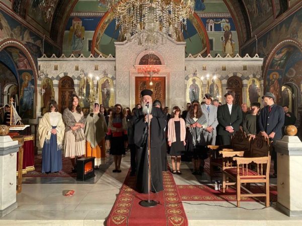 Κλείνοντας την εορταστική αυτή εκδήλωση ο Σεβασμιώτατος Μητροπολίτης κ. Διονύσιος εμφανώς συγκινημένος αλλά και ενθουσιασμένος καθώς οι μικροί μαθητές τον μετέφεραν στην παιδική του ηλικία όπου οι Μικρασιάτες παππούδες, γονείς, νονοί και δάσκαλοί του τον έμαθαν να βιώνει τα Χριστούγεννα με τον πατροπαράδοτο χριστιανικό τρόπο. «Αυτή η παράσταση με έκανε να ξανανιώσω, εξάλλου αυτό ακριβώς σημαίνουν τα Χριστούγεννα για εμάς τους Χριστιανούς, την αναγέννηση, να γίνουμε καινούργιοι άνθρωποι. Σήμερα ζούμε στο σκοτάδι και ας λάμπει ο ήλιος! Τον σβήσαμε και ζούμε σε μια νύχτα ζοφώδη και ασέληνο με την αμαρτία να επικρατεί και να μας βασανίζει. Τα Χριστούγεννα ο πλούτος δεν τα αγγίζει, γιατί οι Χριστιανοί ακόμη και φτωχοί μπορούν απλά, λιτά, φιλάνθρωπα, πνευματικά και Εκκλησιαστικά να βιώσουν πολύ περισσότερα απ’ όσα προσφέρει ο πλούτος. Ας ξαναγυρίσουμε στις πατρογονικές εστίες μας, στον Χριστό, στην Εκκλησία, στην Πατρίδα μας και ας ψάλλουμε όλοι μαζί: «Χριστὸς γεννᾶται, δοξάσατε· Χριστὸς ἐξ οὐρανῶν, ἀπαντήσατε· Χριστὸς ἐπὶ γῆς, ὑψώθητε· ᾄσατε τῷ Κυρίῳ πᾶσα ἡ γῆ καὶ ἐν εὐφροσύνῃ ἀνυμνήσατε, λαοί, ὅτι δεδόξασται»».