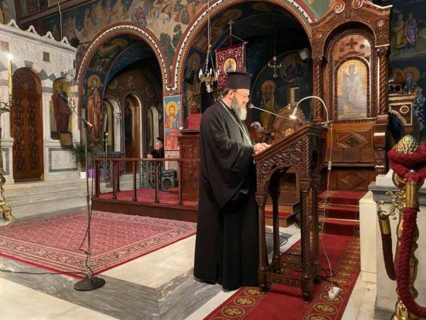 Ακολούθως αναφέρθηκε στον προβληματισμό του, ότι την στιγμή που υπάρχουν δημοσιεύματα στο διαδίκτυο, τα οποία παρουσιάζουν τον Χριστιανισμό σε συνεχώς αυξανόμενη τάση παγκοσμίως, την ίδια στιγμή υπάρχουν βίντεο στην πατρίδα μας, που ερωτώνται μαθητές του Δημοτικού Σχολείου «τι εορτάζουμε τα Χριστούγεννα» και δεν ξέρουν τι να απαντήσου! Τα Θρησκευτικά δεν διδάσκονται πλέον στα σχολεία μας ούτε στα σπίτια και στις οικογένειες. Επιβάλλεται μια πορεία από την αρχή. Γι’ αυτόν τον λόγο η Εκκλησία μας επαναλαμβάνει «Σήμερον γεννάται», «Σήμερον κρεμάται»… και πάντοτε ο Χριστός είναι παρών στην ζωή μας για να δίδει την χάρη Του, να μας ευλογεί και να μας σώζει διαλύοντας τα σκοτάδια της αγνωσίας και οδηγώντας όλους εμάς στην σωτηρία και στο να Τον «ποθούμε» περισσότερο!