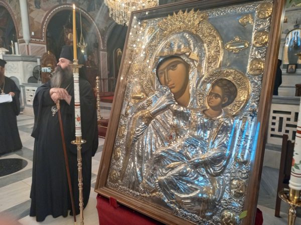 H Εικόνα της Παναγίας “Παραμυθίας” στον Καθεδρικό Ναό Κορίνθου – Προσευχήθηκε για τον Γέροντα Εφραίμ ο Μητροπολίτης