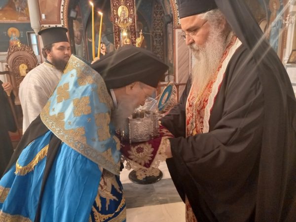 Ο Σεβασμιώτατος κατά τη διάρκεια της υποδοχής προσευχήθηκε υπέρ της ταχείας αναρρώσεως και της πλήρους αποκαταστάσεως της υγείας του Καθηγουμένου της Ιεράς Μεγίστης Μονής Βατοπαιδίου Γέροντος Εφραίμ Βατοπαιδινού ο οποίος είναι και δωρητής της Ιεράς Εικόνος.