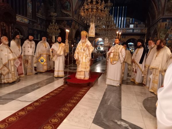 Αμέσως μετά την «ενθρόνιση» τελέσθηκε, χοροστατούντος του Σεβ. Μητροπολίτου κ. Διονυσίου και συμμετεχόντων των Ιερέων των πόλεων Κορίνθου και Λουτρακίου, η καθιερωμένη Ι. Αγρυπνία, προεξάρχοντος του Σεβ. Ποιμενάρχου και συμπροσευχομένου του Θεοφιλεστάτου Επισκόπου Κεγχρεών κ. Αγαπίου, προς τιμήν πάντων των εν Κορινθία διαλαμψάντων Αγίων.