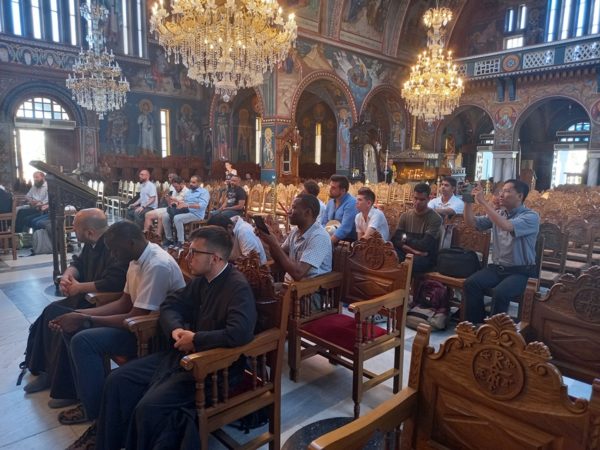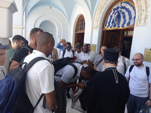 Πρόκειται για μια ομάδα 30 φοιτητών, οι οποίοι προέρχονται από 20 διαφορετικές χώρες του κόσμου, είναι υποψήφιοι Κληρικοί της Ρωμαιοκαθολικής Εκκλησίας και συμμετέχουν σε πρόγραμμα που διοργανώνει η «Αποστολική Διακονία» της Εκκλησίας της Ελλάδος για ένα μήνα και περιλαμβάνει τη διδασκαλία της Ελληνικής γλώσσας και τη γνωριμία με τον Ελληνορθόδοξο Πολιτισμό. Τους φοιτητές συνόδευσε ο καθηγητής του Προγράμματος κ. Χρήστος Παλασκώνης.