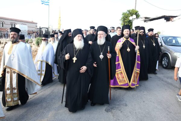 Νωρίτερα είχε προηγηθεί λιτανευτική πομπή της Ιεράς Εικόνος του Αποστόλου Παύλου από τον Ιερό Ναό Κοιμήσεως της Θεοτόκου προς το σημείο όπου τελέστηκε ο Εσπερινός.