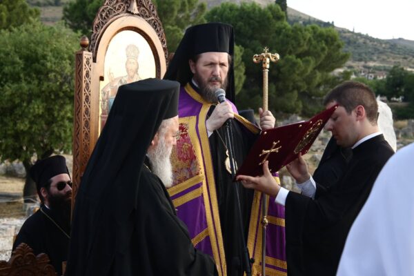 Μεθέορτος Εσπερινός τελέστηκε σήμερα το απόγευμα στο Βήμα του Γαλλίωνος στην Αρχαία Κόρινθο.