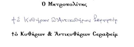 Για το φλέγον, όπως το χαρακτηρίζει, ζήτημα της έκδοσης των νέων ταυτοτήτων αναφέρθηκε ο Μητροπολίτης Κυθήρων και Αντικυθήρων κ. Σεραφείμ στην Ποιμαντορική του Εγκύκλιο για την έναρξη του νέου Εκκλησιαστικού Έτους, η οποία διαβάστηκε σε όλες τις ενορίες της Μητροπόλεως την Κυριακή 3 Σεπτεμβρίου.