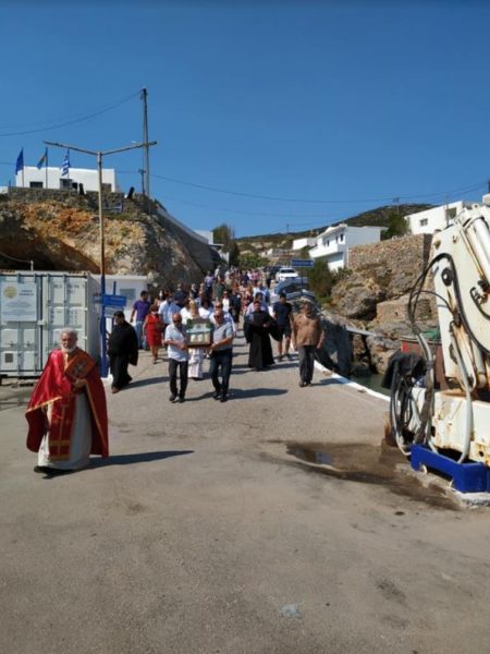 Ο Σεβασμιώτατος, τέλεσε δέηση υπέρ των πυροπλήκτων, σεισμοπλήκτων και πλημμυροπαθών αδελφών μας, ενώ ιδιαιτέρως δεήθηκε για την λύση της πολυετούς ανομβρίας που μαστίζει τα νησιά μας. Ευχήθηκε, τέλος, του χρόνου ο εορτάσμος να πραγματοποιηθεί με λαμπρότητα στο ανακαινισμένο Μοναστήρι του Αγίου.