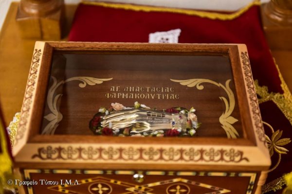 Την κυριώνυμο ημέρα της εορτής τελέσθηκε η πανηγυρική Αρχιερατική Θεία Λειτουργία, προεξάρχοντος του επιχώριου Μητροπολίτου, τον οποίο και πλαισίωναν Ιερείς και Διάκονοι της Ιεράς Μητροπόλεως, ενώ προ της ενάρξεως εκομίσθη και ετέθη προς προσκύνηση και πνευματική ευλογία των Πιστών, υπό του Αιδεσιμολογιωτάτου Πρωτοπρεσβυτέρου π. Αντωνίου Πατρικίου, εφημερίου του Ιερού Ναού Αγίου Νεκταρίου Χαρισείου Θεσσαλονίκης, απότμημα του Σεπτού Λειψάνου της σήμερα τιμωμένης Αγίας Αναστασίας της Φαρμακολυτρίας.