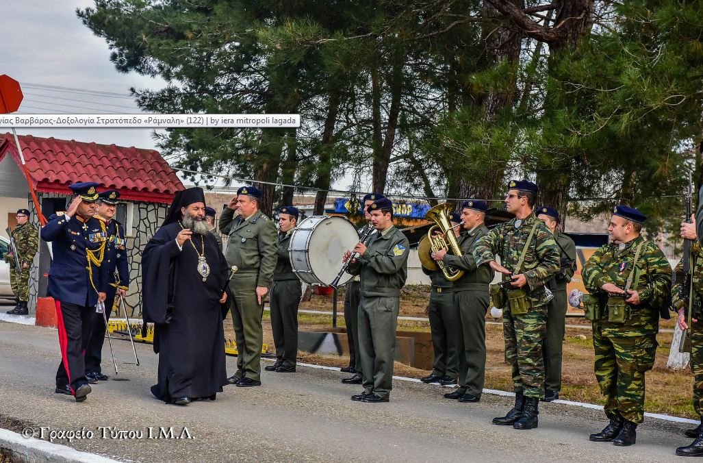 Εν συνεχεία ο Σεβασμιώτατος Μητροπολίτης Λαγκαδά κ.κ. Ιωάννης, μετέβη εις την Στρατιωτική Μονάδα της 194ης ΜΠΕΠ (MLRS), η οποία και εδρεύει στο Στρατόπεδο «Ράμναλη», όπου παρουσία του Επιτελάρχη του NDC.GR, Υποστράτηγου κ. Χρήστου Δρίβα, προέστη της Επισήμου Δοξολογίας επί τῇ εορτῇ της Αγίας Μεγαλομάρτυρος Βαρβάρας, προστάτιδος του Πυροβολικού Σώματος του Στρατού Ξηράς.