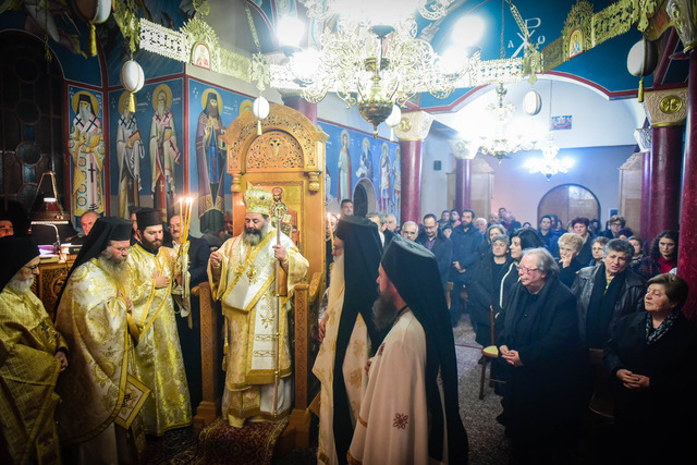 Προ της Απολύσεως ο Σεβασμιώτατος κατά την διάρκεια της συντόμου προσλαλιάς του, σημείωσε ότι «οι Άγιοι αποτελούν τα φωτεινά εκείνα παραδείγματα που θα μας οδηγήσουν στο Θεοδέγμον Σπήλαιο και θα να μας δείξουν ότι, όταν κανείς θέλει και επιθυμεί πραγματικά ο Ιησούς Χριστός είναι «χθὲς καὶ σήμερον ὁ αὐτὸς καὶ εἰς τοὺς αἰῶνας» και επομένως μιμούμενος κανείς το παράδειγμα του Κυρίου, μπορεί να ζήσει και να βιώσει όλα εκείνα τα βιώματα και το περιεχόμενο της Καινής Κτίσεως. Διότι αυτό που Ευαγγελίζεται η ζωή της Αγίας μας Εκκλησίας, είναι η σχέση του ανθρώπου με τον Ιησού Χριστό και η ένωση του με τον Κύριο».
