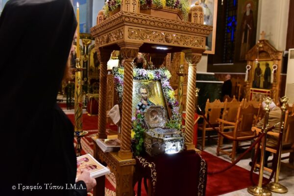 Καθ´ όλη την διάρκεια της λατρευτικής συνάξεως συνεχιζόταν με αμείωτο ρυθμό το Ιερό Προσκύνημα της Τιμίας Κάρας του Αγίου Ιωάννου του Χρυσοστόμου, η οποία εκομίσθη από την Ιερά Πατριαρχική και Σταυροπηγιακή Μεγίστη Μονής Βατοπαιδίου Αγίου Όρους όπου και αποθησαυρίζεται υπό του Καθηγουμένου Αυτής, Πανοσιολογιωτάτου Αρχιμανδρίτου Γέροντος Εφραίμ, συνοδεία Αγιορειτών Πατέρων.