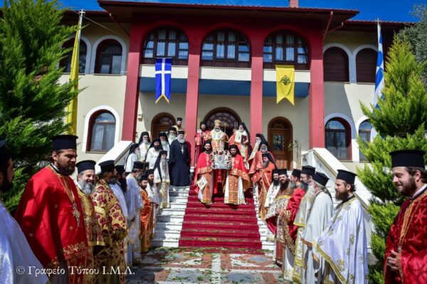 Προ της Απολύσεως της Ακολουθίας του Εσπερινού της Αγάπης, ανεγνώσθη η Πασχάλιος Ποιμαντορική Εγκύκλιος του Σεβασμιωτάτου Μητροπολίτου Λαγκαδά κ.κ. Ιωάννου, ο οποίος στο τέλος συμπληρώνοντας απηύθυνε προς πάντας τον Αναστάσιμον χαιρετισμόν και τις Πασχάλιες Εόρτιες ευχές του, διανέμοντας προς όλους τους παρισταμένους τα καθιερωμένα πασχαλινά κόκκινα αυγά.