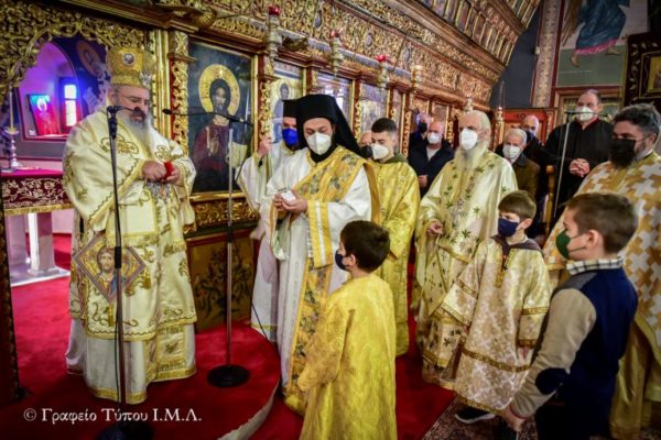 Ο Σεβασμιώτατος τίμησε όλα τα παιδιά (4 στον αριθμό) , τα οποία αψηφώντας το δριμύ κρύο της εποχής, βούτηξαν για να ανασύρουν τον Τίμιο Σταυρό την ημέρα των Θεοφανείων, στην ειδικά διαμορφωμένη κατασκευή πλησίον του Αγιάσματος της Ζωοδόχου Πηγής, επιδίδοντάς τους από έναν επιστήθιο Σταυρό και μία Καινή Διαθήκη, συγχαίροντας τα για την τόλμη τους αυτή,