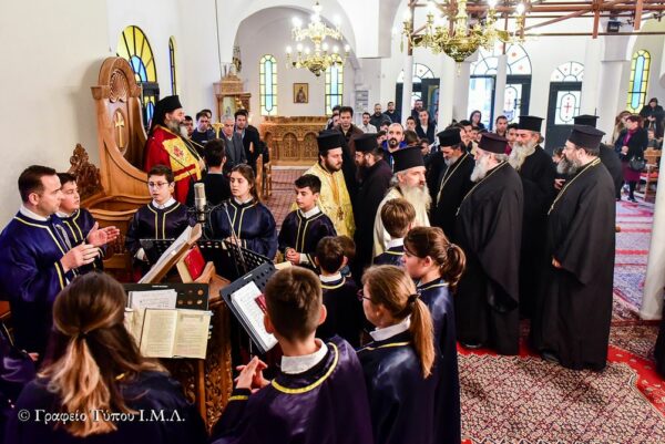 Κατά την διάρκεια του Εσπερινού παρέστησαν αντιπροσωπείες από Αναγνώστες, Ιεροσπουδαστές και Ιεροπαίδες που διακονούν στα Ιερά Βήματα και στα Αναλόγια των ενοριών της καθ΄ ημάς Ιεράς Μητροπόλεως, ενώ το αναλόγιο του Ναού λάμπρυναν για ακόμη μία φορά η Παιδική και Νεανική Βυζαντινή Χορωδία «Ειρμός» υπό την διεύθυνση του Καθηγητή Βυζαντινής Μουσικής κ. Σπυρίδωνα Ασπίωτη.