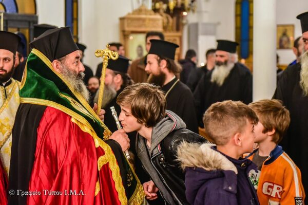 Προ της Απολύσεως ο Σεβασμιώτατος προέβει στην χειροθεσία δύο νέων αναγνωστών, συμβουλεύοντας τους γονείς «να ενθαρρύνουν με αγάπη τα παιδιά, όταν εκείνα εκδηλώνουν την επιθυμία τους να γίνουν ιερείς, και προτρέποντας όλους να έχουν ως καθημερινό σύνθημα στην ζωή τους, την Αγάπη προς τον Θεό, την Αγάπη προς τον συνάνθρωπο, την Αγάπη προς την ζωή της Αγίας μας Εκκλησίας, την Αγάπη προς αυτό που αποτελεί το σήμερα και οικοδομεί το αύριο και το μέλλον τόσο σε προσωπικό επίπεδο όσο και του Τόπου μας».