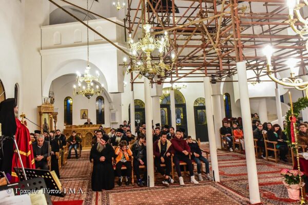 Κατά την διάρκεια του Εσπερινού παρέστησαν αντιπροσωπείες από Αναγνώστες, Ιεροσπουδαστές και Ιεροπαίδες που διακονούν στα Ιερά Βήματα και στα Αναλόγια των ενοριών της καθ΄ ημάς Ιεράς Μητροπόλεως, ενώ το αναλόγιο του Ναού λάμπρυναν για ακόμη μία φορά η Παιδική και Νεανική Βυζαντινή Χορωδία «Ειρμός» υπό την διεύθυνση του Καθηγητή Βυζαντινής Μουσικής κ. Σπυρίδωνα Ασπίωτη.