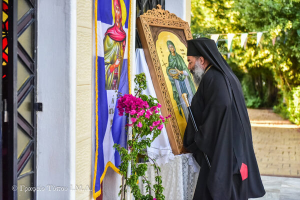Τον Θείο Λόγο εκήρυξε ο Θεοφιλέστατος Επίσκοπος Ρηγίου κ.κ. Ειρηναίος, ο οποίος και αναφέρθηκε εκτενώς στον Βίο και το Μαρτύριο της Αγίας Παρασκευής, τονίζοντας το παράδειγμα της, ως οδοδείκτη πορείας για την ζωή του ανθρώπου στις δύσκολες αυτές ημέρες που βιώνουμε.