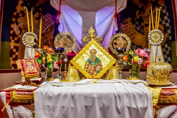 Στην ομιλία του προ της Απολύσεως, αναφέρθηκε στην μορφή του Αγίου Αθανασίου και στην σημασία της Τιμής των Ιερών Λειψάνων στην Ορθόδοξη Παράδοση, καθώς επίσης στην αξία του προσώπου καθενός ανθρώπου κάνοντας παράλληλα αναφορά στις πρωτόγνωρες καταστάσεις που βιώνουμε λόγω της πανδημίας.
