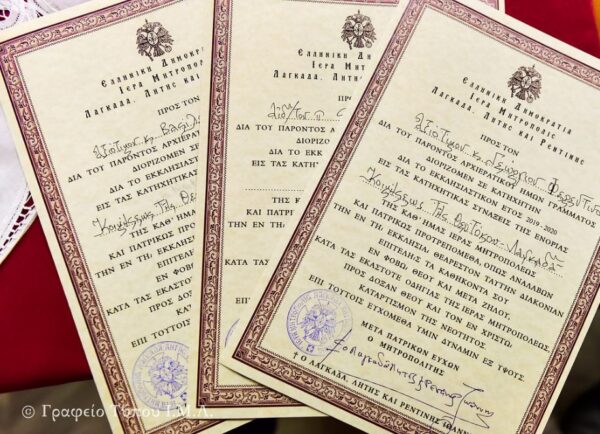 Στην αρχή της χαιρετιστήριας ομιλίας του, ο Σεβασμιώτατος Μητροπολίτης Λαγκαδά, Λητής και Ρεντίνης κ.κ. Ιωάννης, καλωσόρισε τους παρισταμένους, και με πατρικούς λόγους αγάπης που τους απεύθυνε, τους ευχαρίστησε για την εθελοντική τους διακονία μέσα από την κατήχηση στον ευαίσθητο και κρίσιμο τομέα της νεότητας.